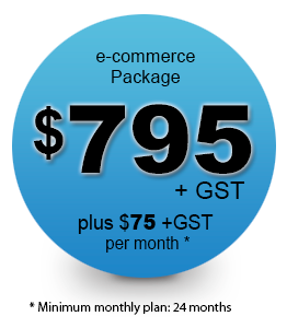 Get your online shop operating on the internet quickly and efficiently with our e-Commerce Website Package that costs a low $795 + GST to set up and a monthly fee of $75 + GST * giving you FREE domain name registration, hosting and maintenance and can be up and running in 14 days.